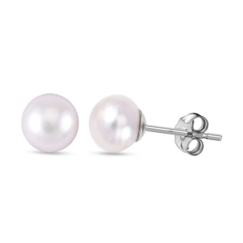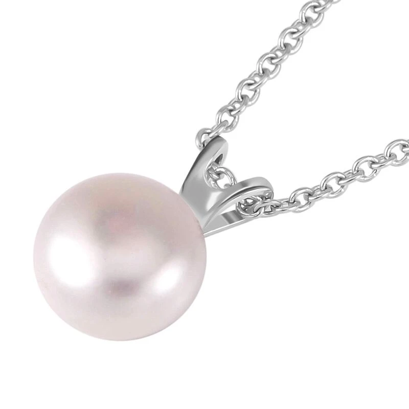 2er Set – Weiße Süßwasser Perle Ohrringe Und Anhänger Mit Kette, 925 Silber Rhodiniert Und Edelstahl