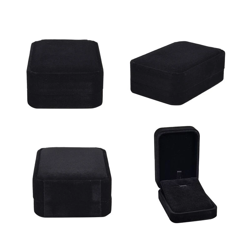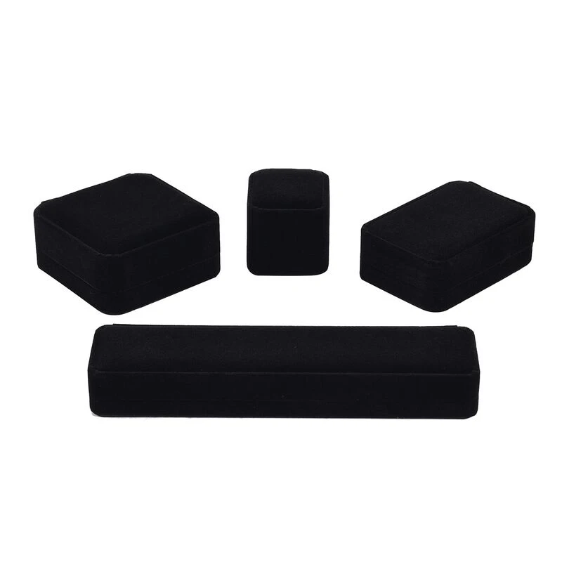 4er Set – Samtene Schmuckschatullen, Ringschachtel, Anhängerschachtel, Armbandschachtel Und Kettenschachtel, Schwarz