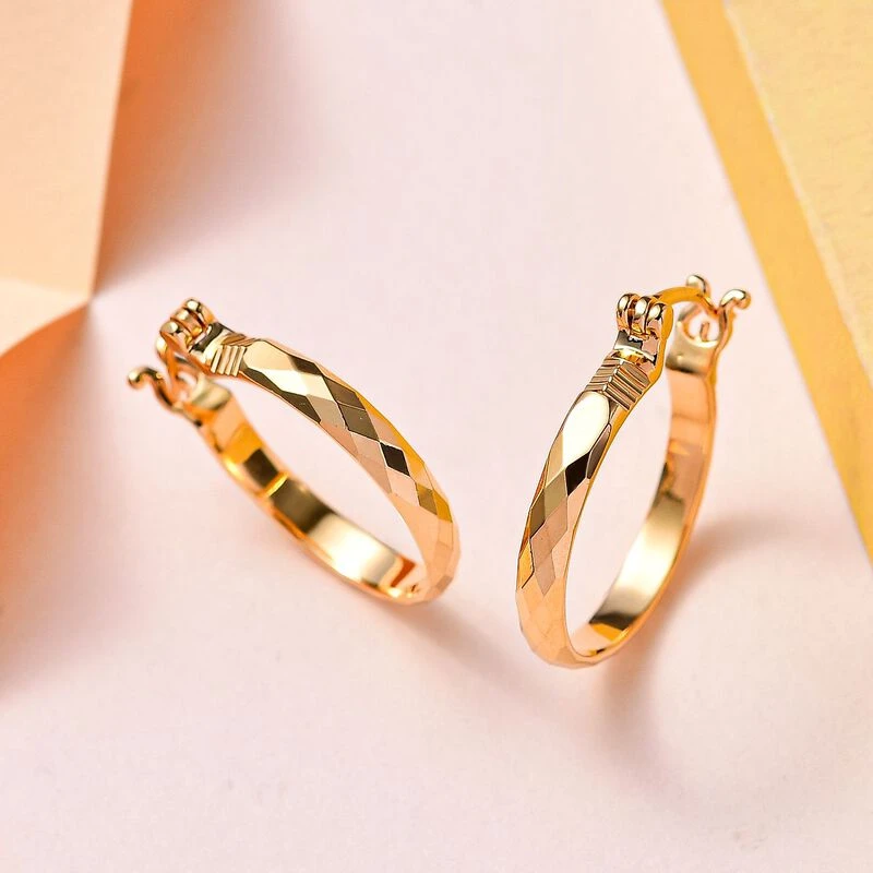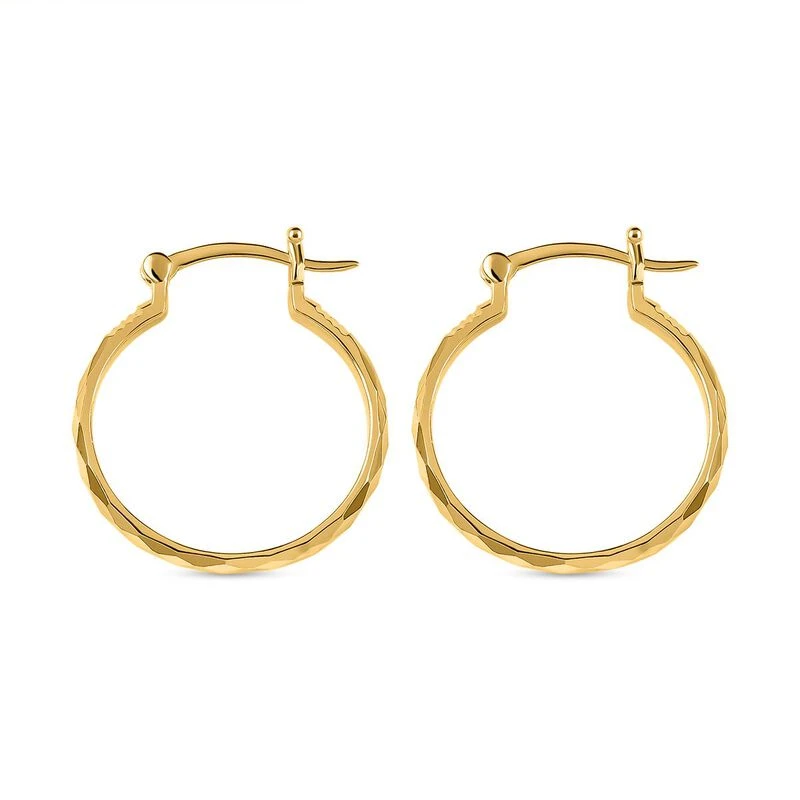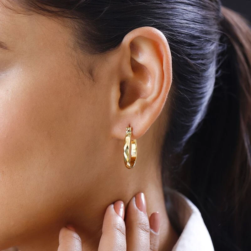 Die perfekten Creolen für Damen, die dank des Diamantschliff-Musters mit ihrem Schimmer Ihren Look aufwerten. Diese 5 Gramm schweren Ohrringe für Damen fangen das Licht in ihren Facetten ein und bringen Vielseitigkeit in Ihre Looks. Die Ohrringe lassen sich leicht mit jedem Look kombinieren und werden mit einem französischen Clip-Verschluss gesichert.