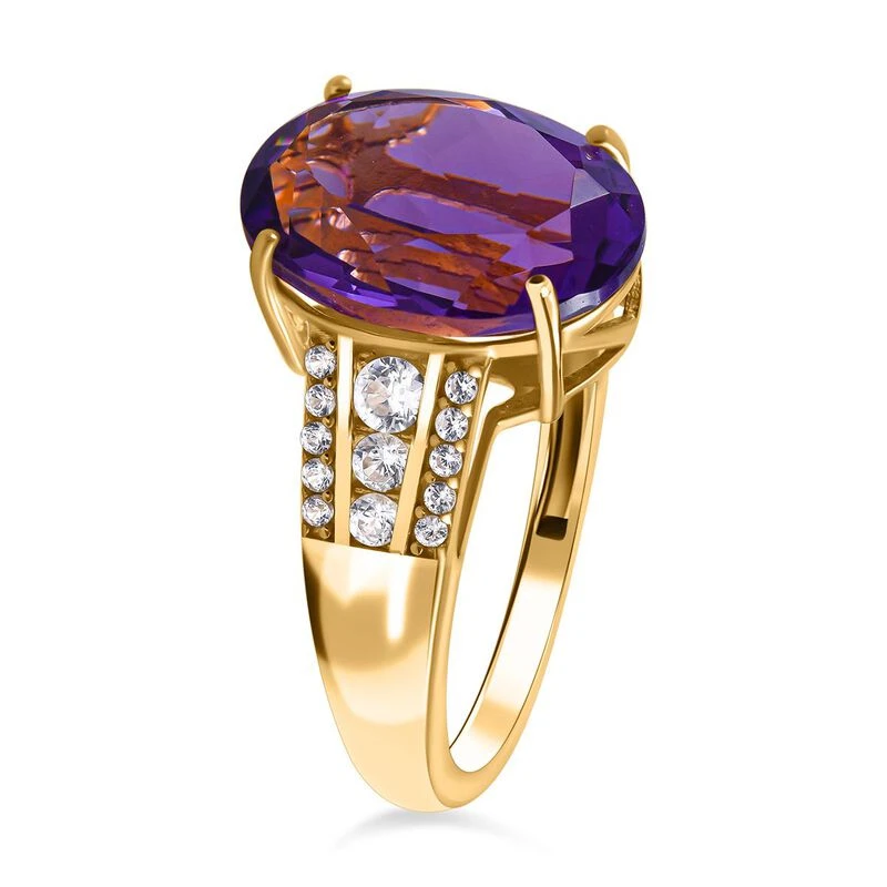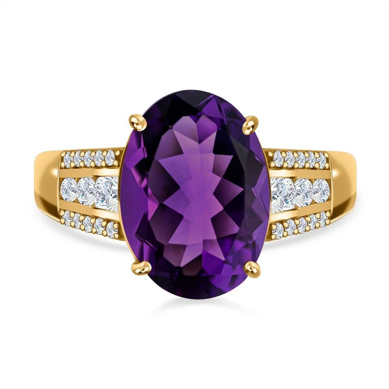 AA Lusaka Amethyst, Weißer Zirkon Ring, 925 Silber Vergoldet (Größe 21.00) Ca. 6.10 Ct
