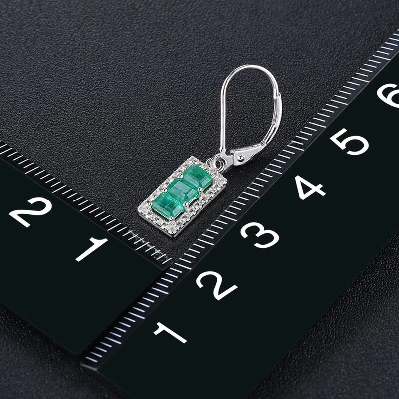AAA Kagem Sambia Smaragd Und Zirkon Ohrringe 925 Silber Rhodiniert Ca. 1,72 Ct