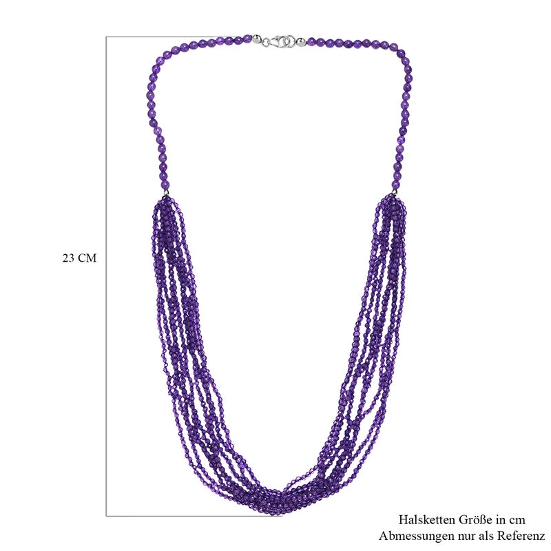 Afrikanischer Amethyst Mehrsträngige Halskette, Ca. 50 Cm 925 Silber Ca. 100.00 Ct