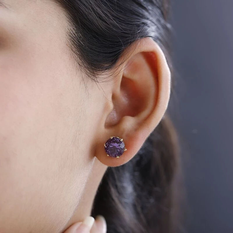 Die vom Solitär inspirierten Ohrstecker sehen wie eine blühende Blume aus. Die seitliche Galerie ist mit den lebhaften, tiefvioletten Farbtönen von 2 Amethysten geschmückt und mit 36 Zirkonen besetzt, die ihren Glanz hinzufügen. Diese Ohrringe mit Steckverschlüssen sind aus 2,2 Gramm Silber mit Gelbgold Vermeil gegossen.