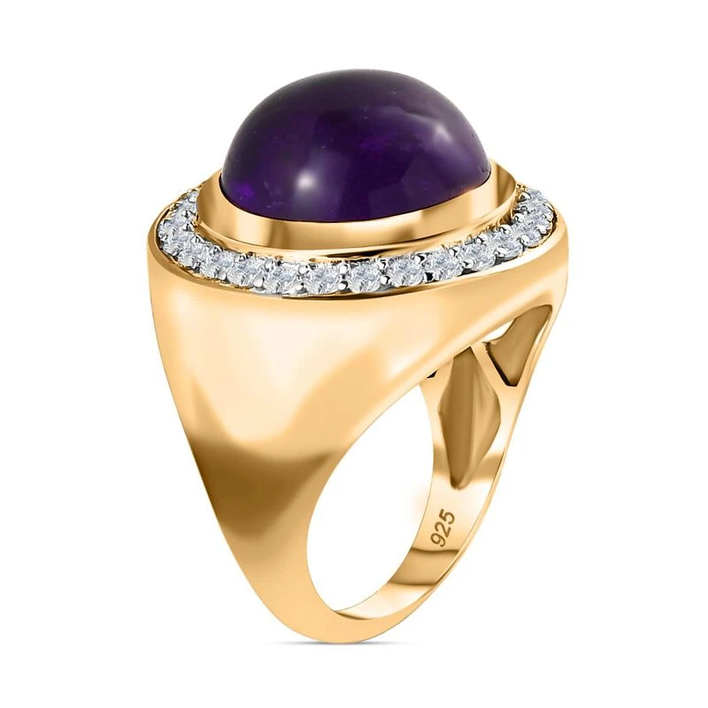Afrikanischer Amethyst, Weißer Zirkon Ring, 925 Silber Vergoldet (Größe 17.00) Ca. 9.38 Ct
