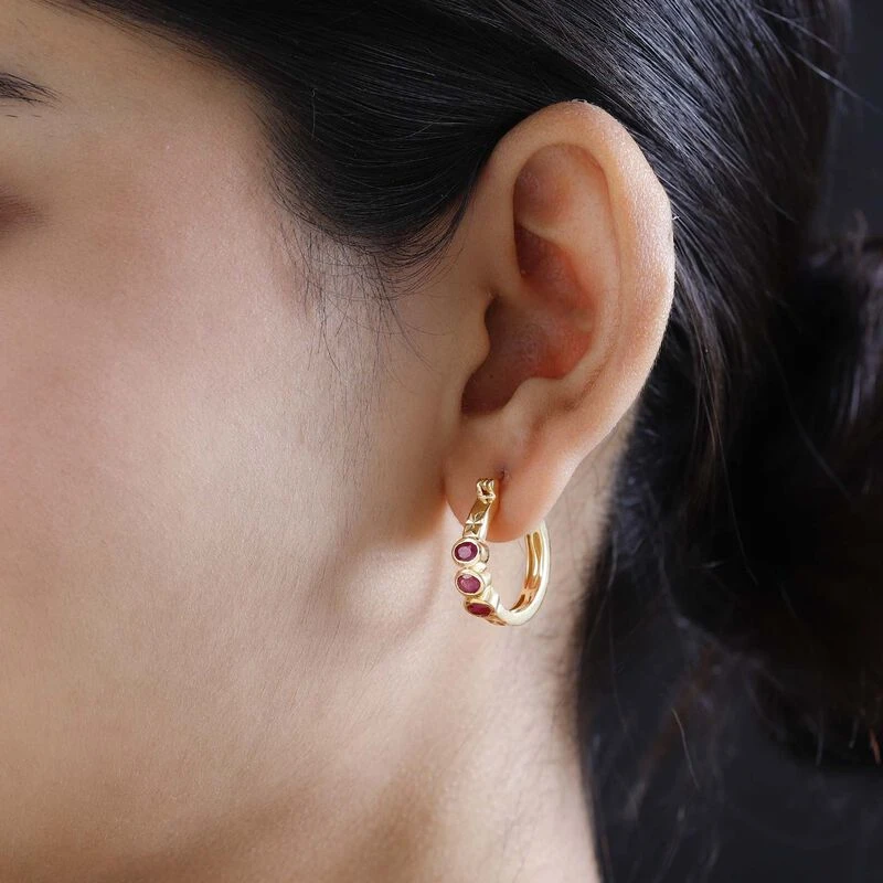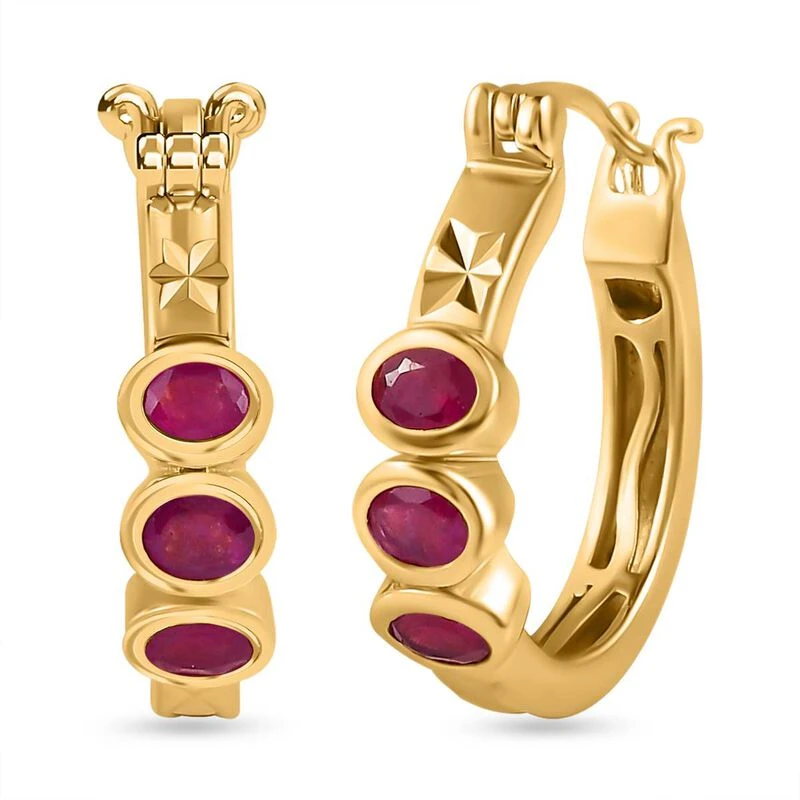 Afrikanischer Rubin (Fissure Gefüllt) Ohrringe 925 Silber Gelbgold Vermeil Ca. 1.63 Ct