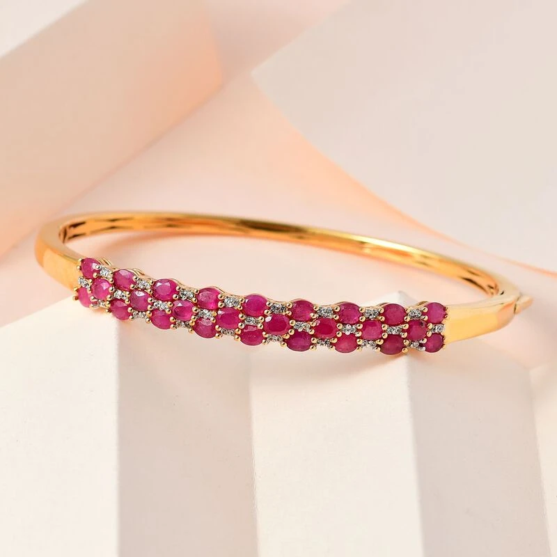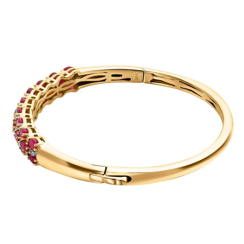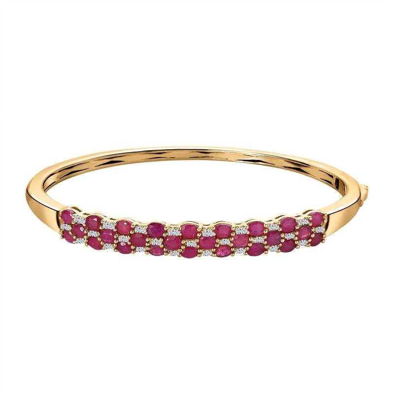 Afrikanischer Rubin (Fissure Gefüllt), Weißer Zirkon Armreif Ca. 18 Cm 925 Silber Vergoldet Ca. 7.60 Ct