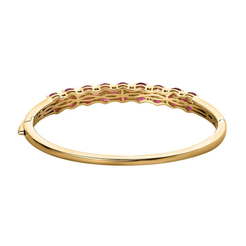 Ihre Schmuckkollektion ist unvollständig ohne diesen Armreif, der mit 26 Rubinen und 50 Zirkonen in einer Krappenfassung geschmückt ist. Der Armreif aus vergoldetem Silber wiegt 17 Gramm und sorgt dafür, dass Sie mit den Schmucktrends Schritt halten können.