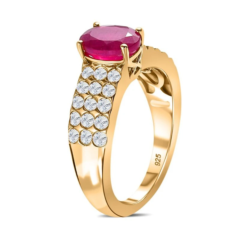 Afrikanischer Rubin (Fissure Gefüllt), Weißer Zirkon Ring 925 Silber Vergoldet (Größe 17.00) Ca. 2.83 Ct
