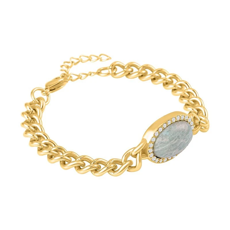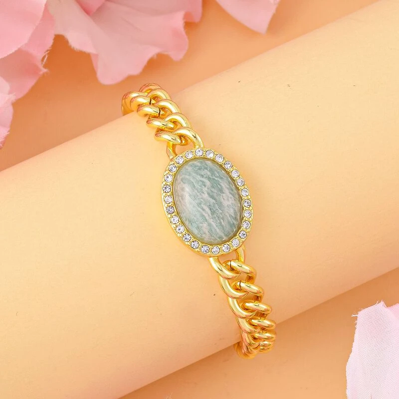 Amazonit, Weißer Kristall Armband, Ca. 19 Cm, Reiner Edelstahl, Ca. 10.01 Ct