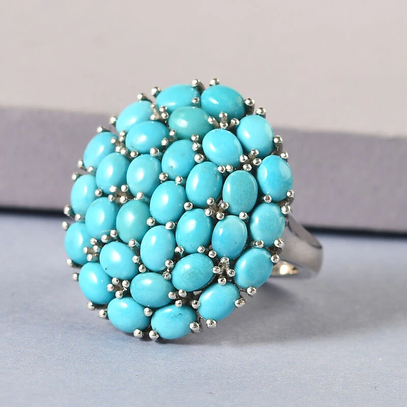 Amerikanischer, Natürlicher Sleeping Beauty Türkis-Ring, 925 Silber Platiniert (Größe 17.00) Ca. 5.02 Ct