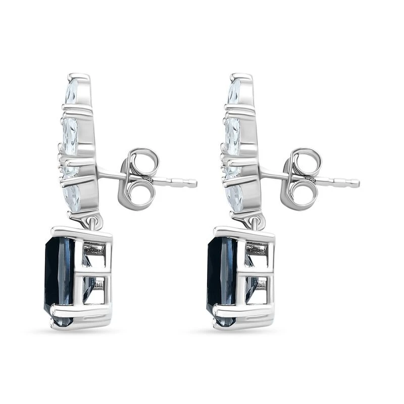 Ceylon Farbene Quarz, Weiße Topas Ohrringe, 925 Silber Platiniert Ca. 6.61 Ct