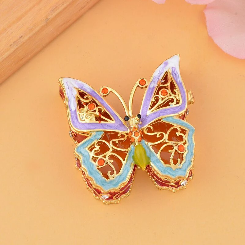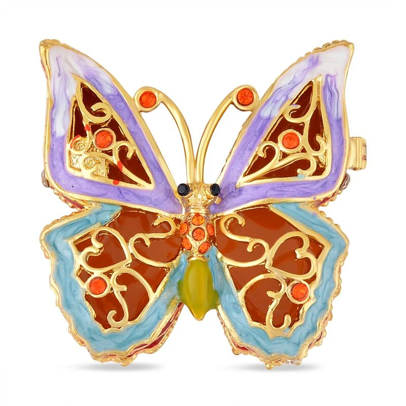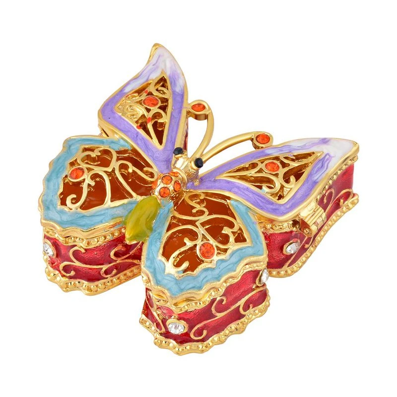 Emailliertes Tablettendöschen Mit Mehrfarbigen Kristallen, Schmetterling