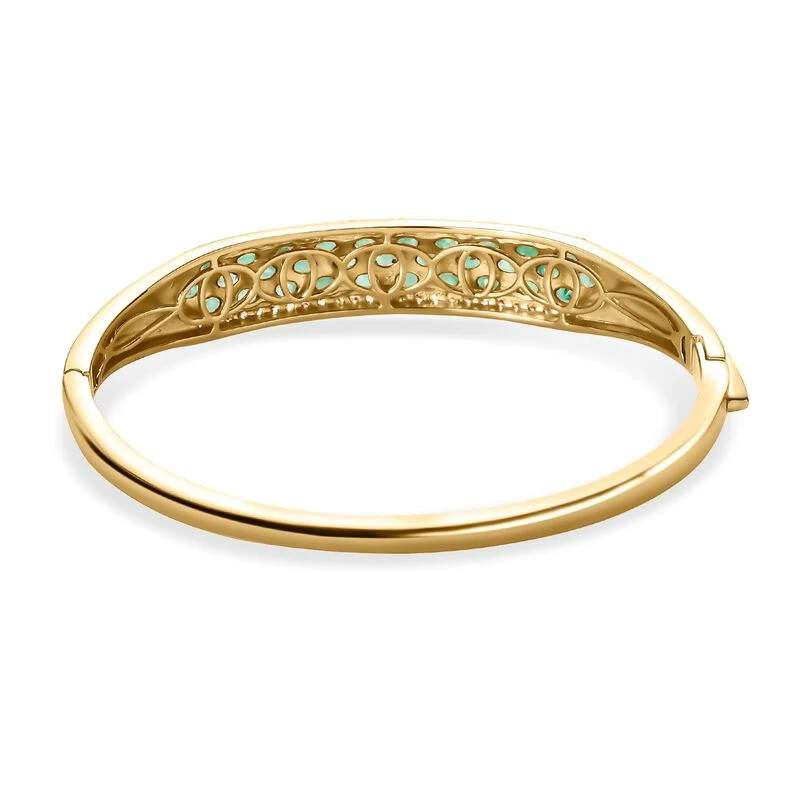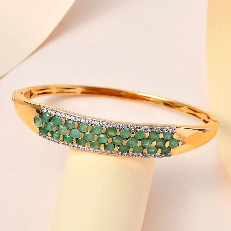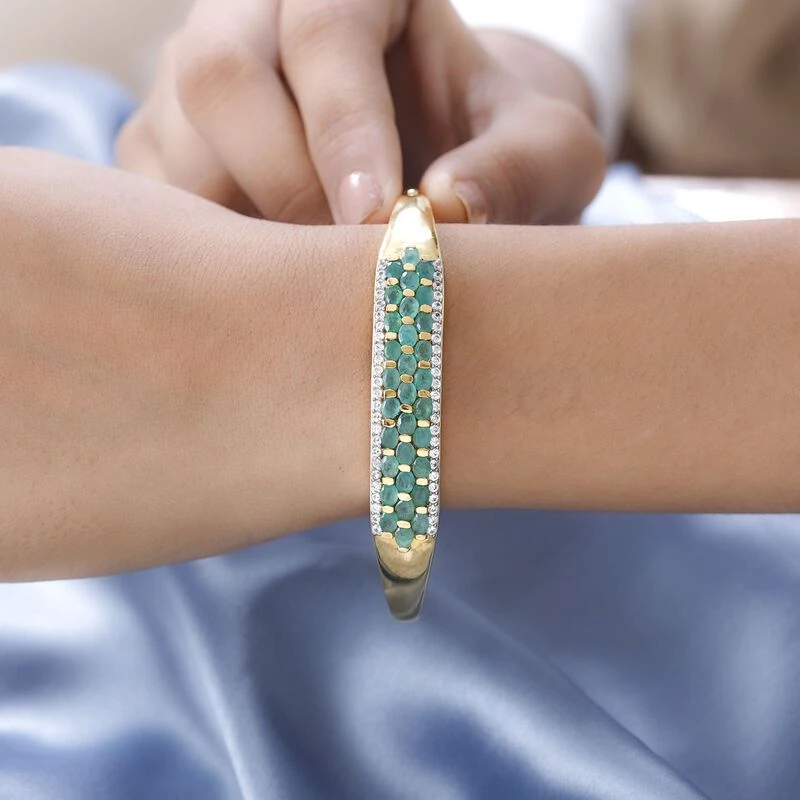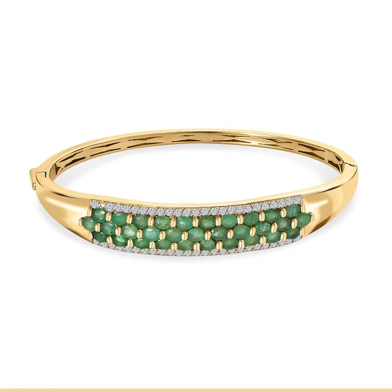 Kagem Sambischer Smaragd, Weißer Zirkon Armreif, Ca. 19 Cm, 925 Silber Gelbgold Vermeil, Ca. 6.74 Ct