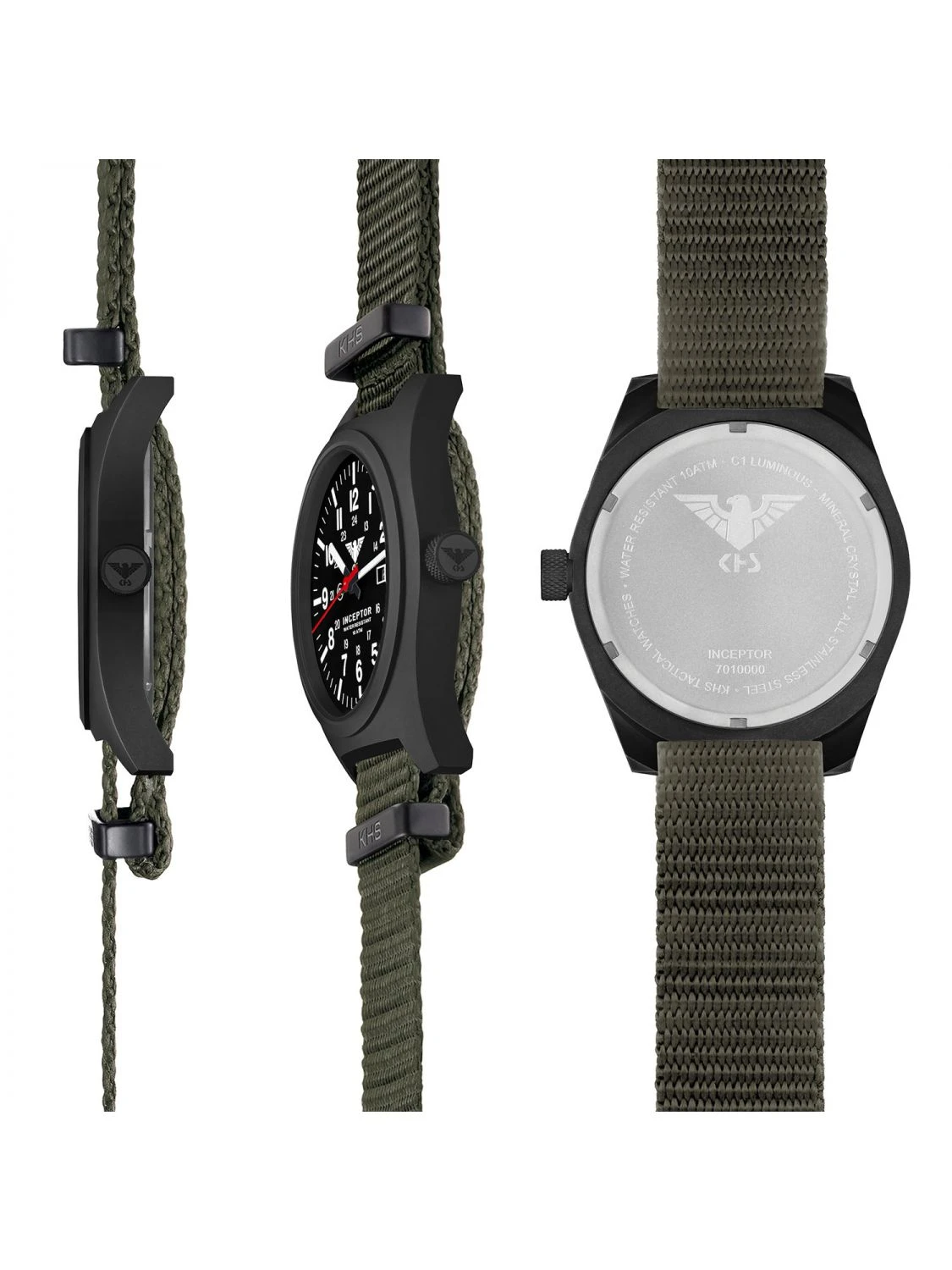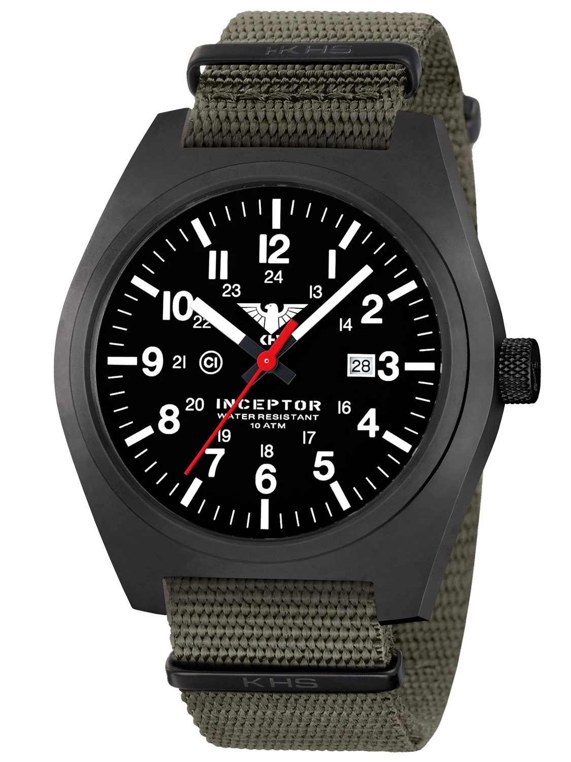 KHS INCBS.NSGO Herrenuhr Inceptor Black Steel Steingau-Oliv