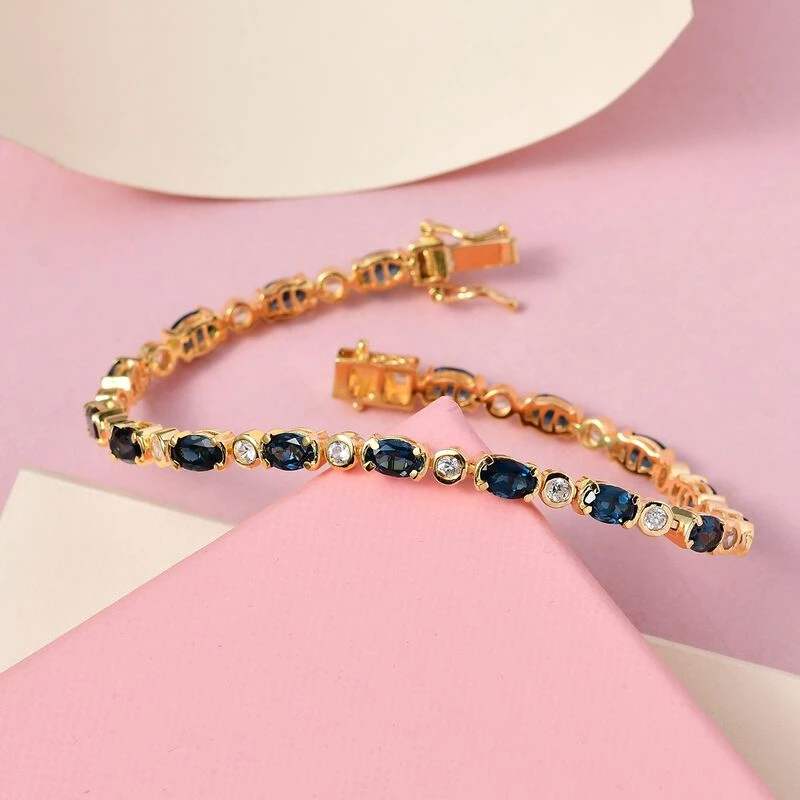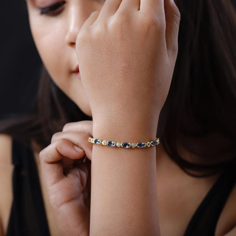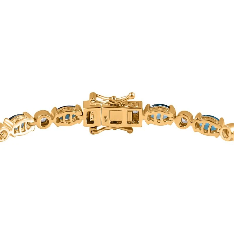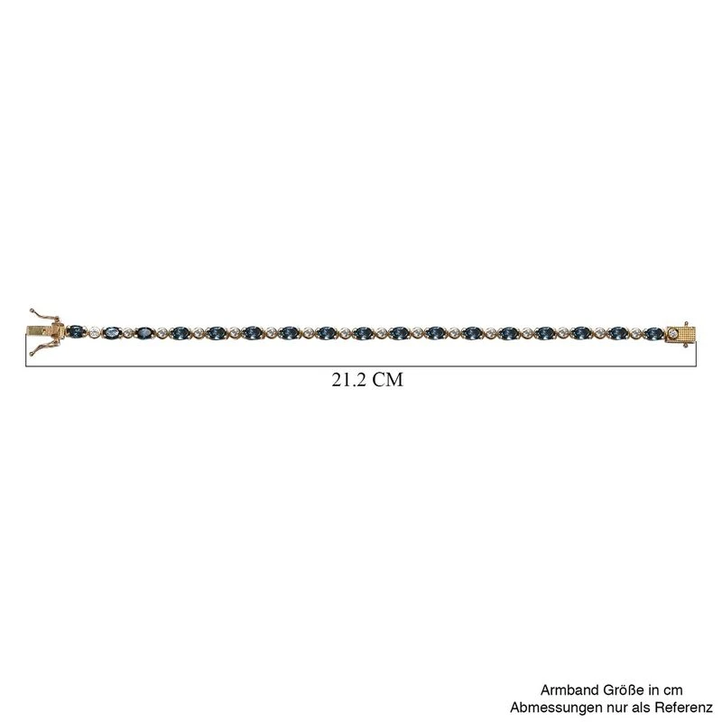London Blau Topas Und Weißer Zirkon Armband, Ca. 20 Cm, 925 Silber Vergoldet Ca. 8,78 Ct