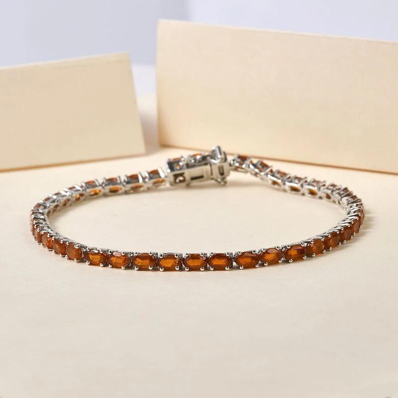 Mandarinen-Kyanit Armband Ca. 20 Cm 925 Silber Platiniert Ca. 13,03 Ct