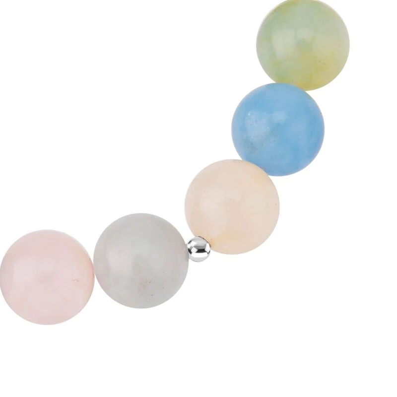 Mehrfarbiges Beryll, Smaragd, Aquamarin, Morganit, Heliodor-Armband(10-12mm), Ca. 18 Cm 925 Silber Rhodiniert Ca. 200.00 Ct