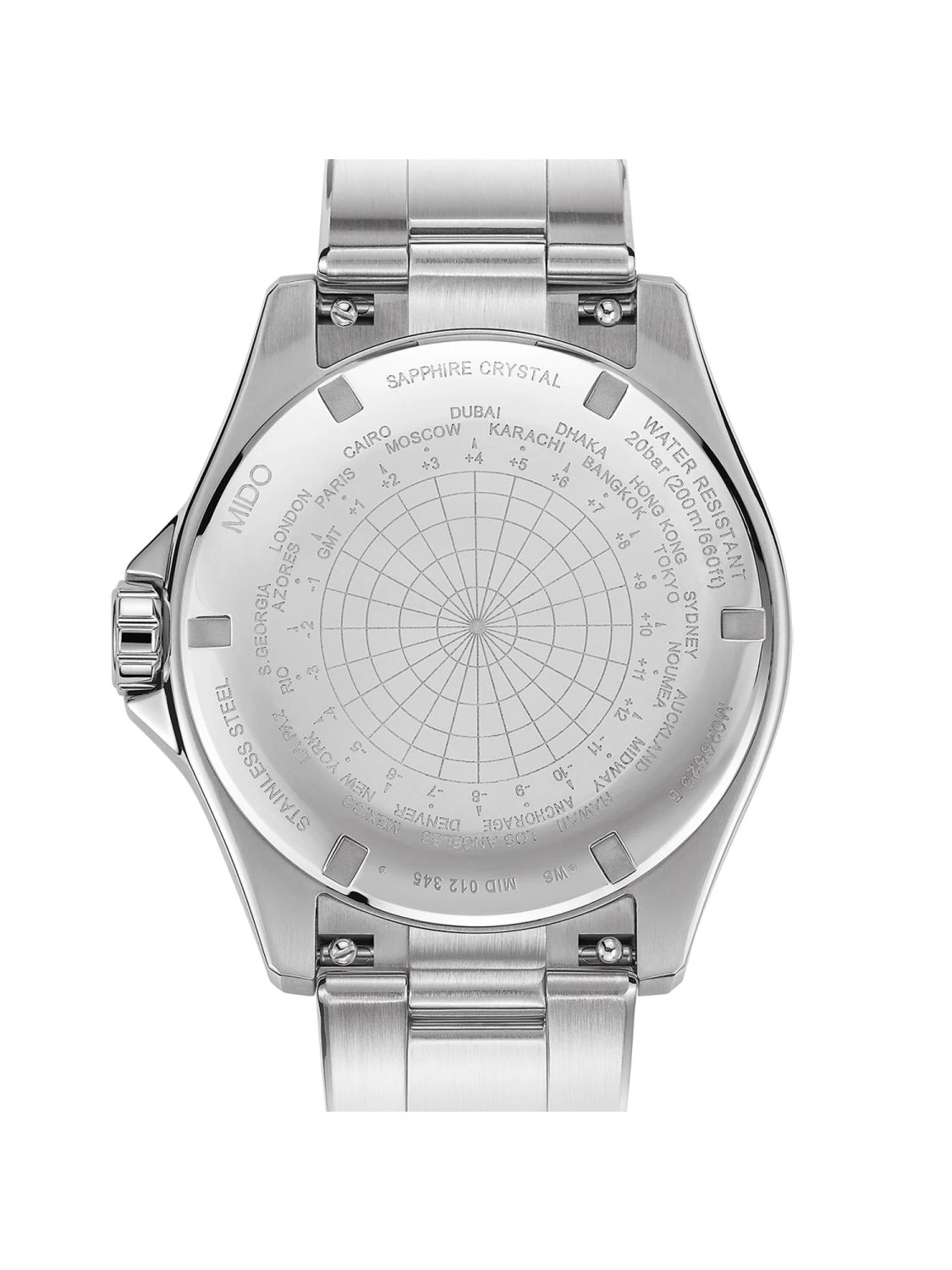 - verschraubter Gehäuseboden mit Gravur der Zeitzonenangaben