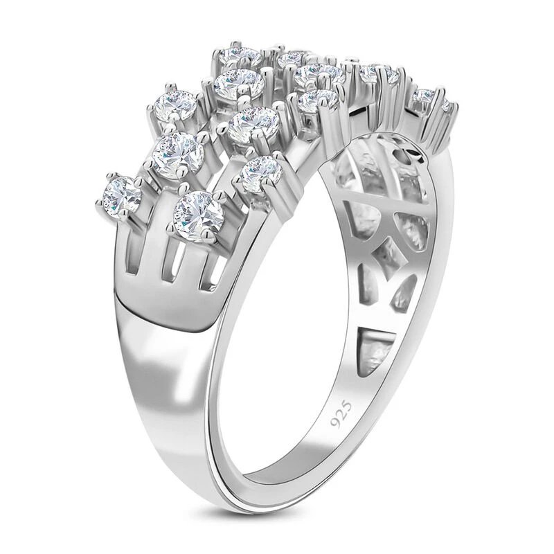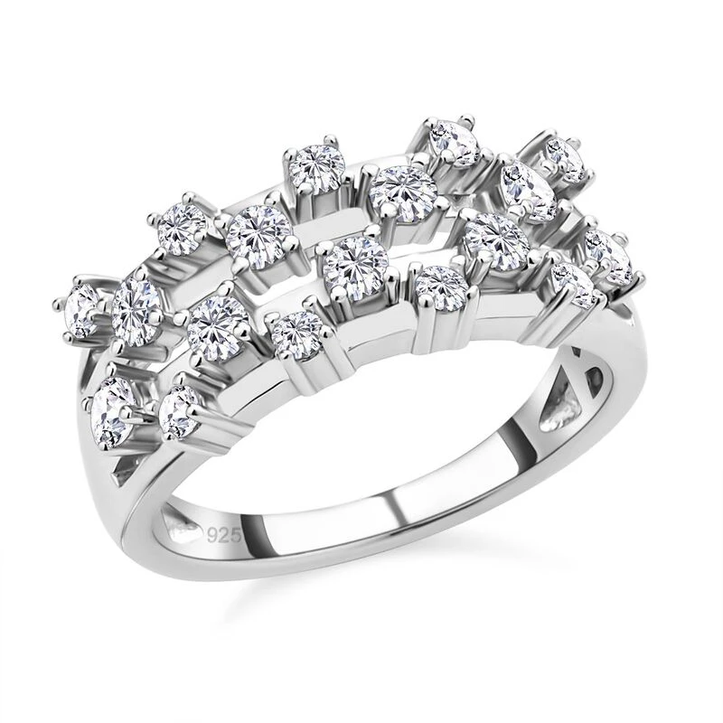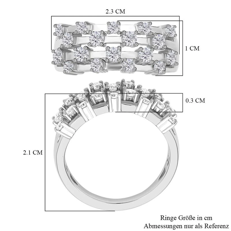 Cluster-Ring mit 0,82 Karat Moissanit in rhodiniertem Silber. Ein diamantähnlicher Glanz für jedes Budget in unserem Onlineshop!