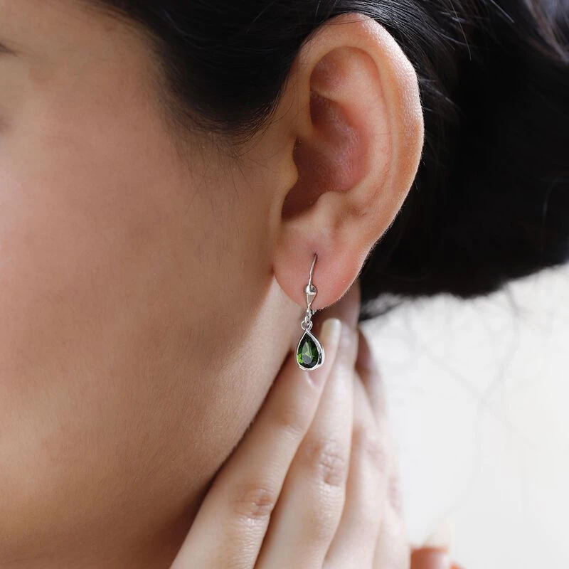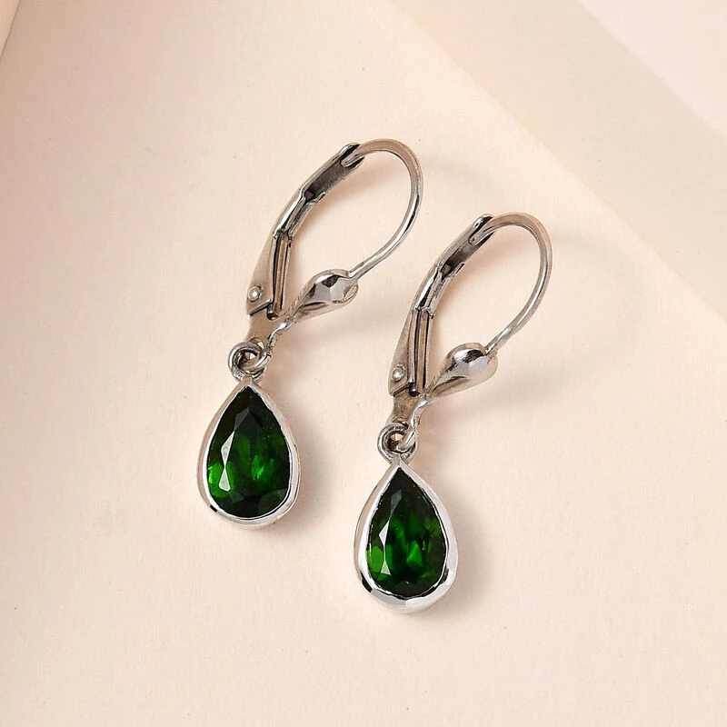 Natürlicher Chromdiopsid Ohrringe 925 Silber Platiniert Ca. 1.79 Ct