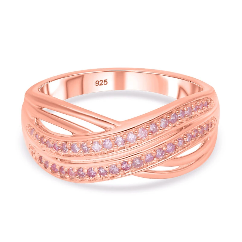Natürlicher, Rosa Diamant Ring, 925 Silber Roségold Vermeil (Größe 16.00) Ca. 0.20 Ct