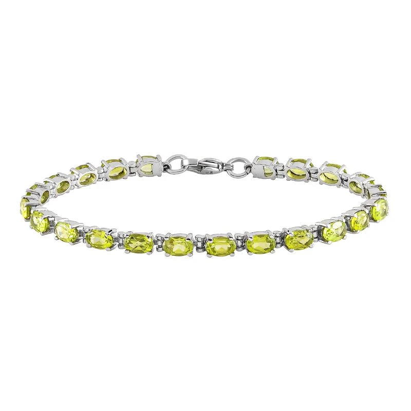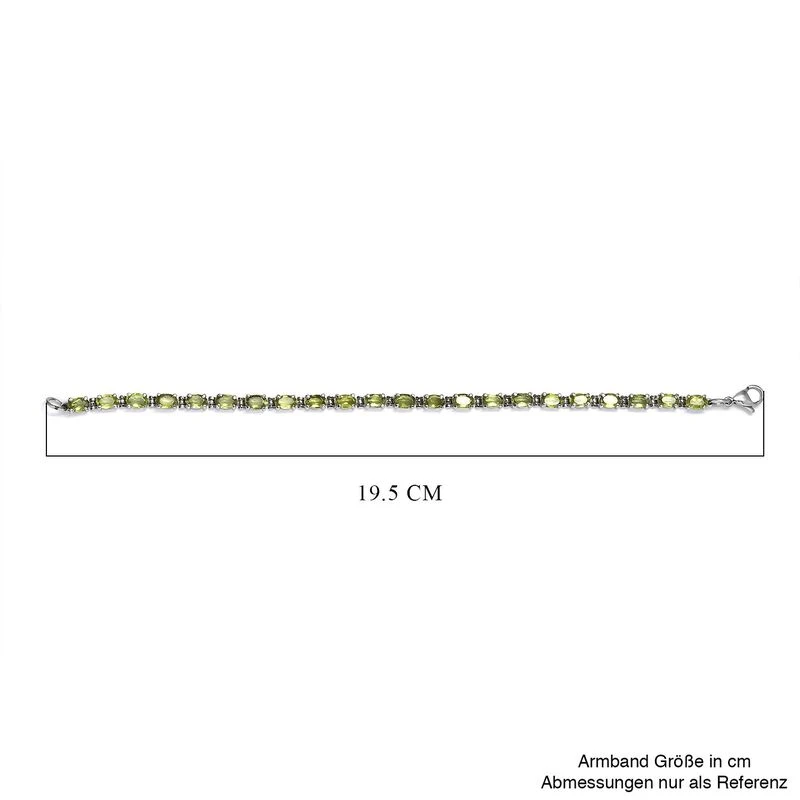Natürliches Peridot-Armband, Ca. 19 Cm, Edelstahl, Ca. 10,36 Ct