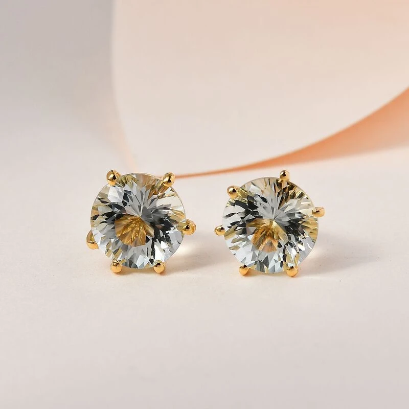 Prasiolite Ohrringe, 925 Silber Gelbgold Vermeil Ca. 4.12 Ct