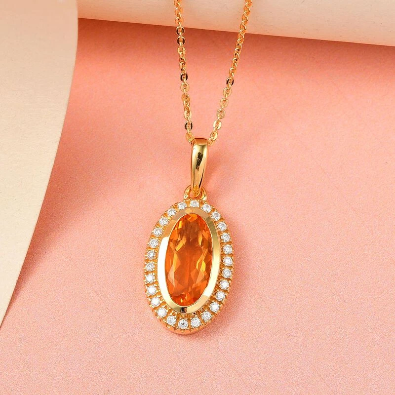 Purpurroter Feueropal Und Moissanit-Anhänger Mit Kette, 925 Silber Gelbgold Vermeil Ca. 1.79 Ct