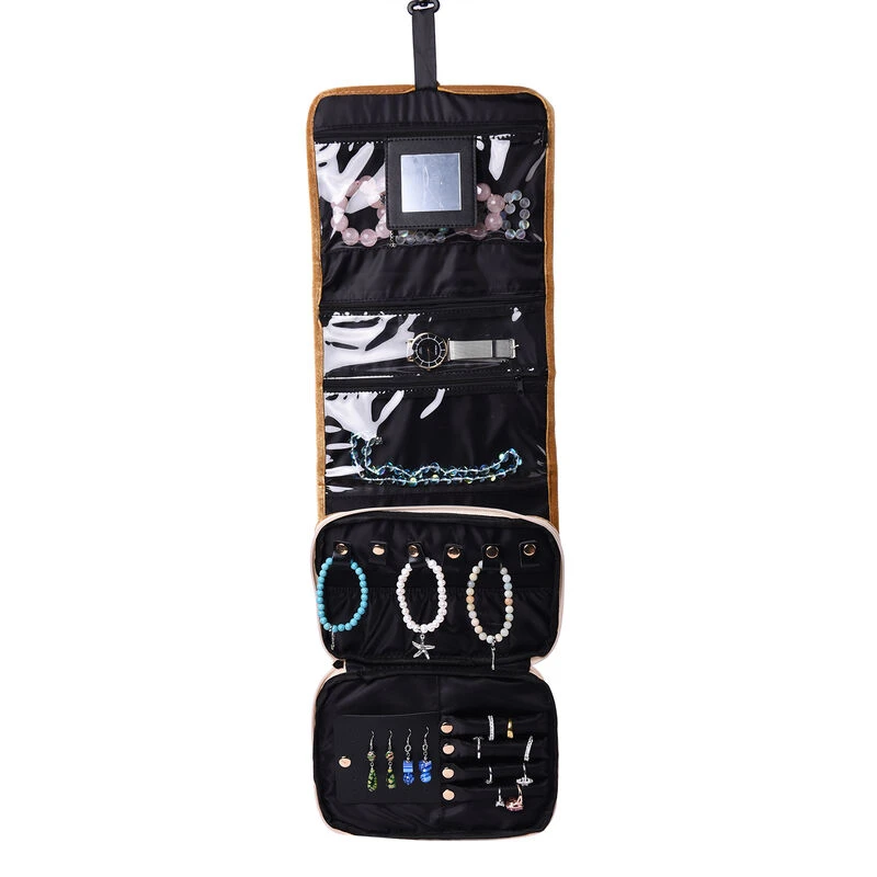 Reisetasche Für Kosmetik Und Schmuck Mit Abnehmbarem Schmuckfach, Gefaltet 25x20x4cm, Ungefaltet 25x78x4cm, Goldfarben