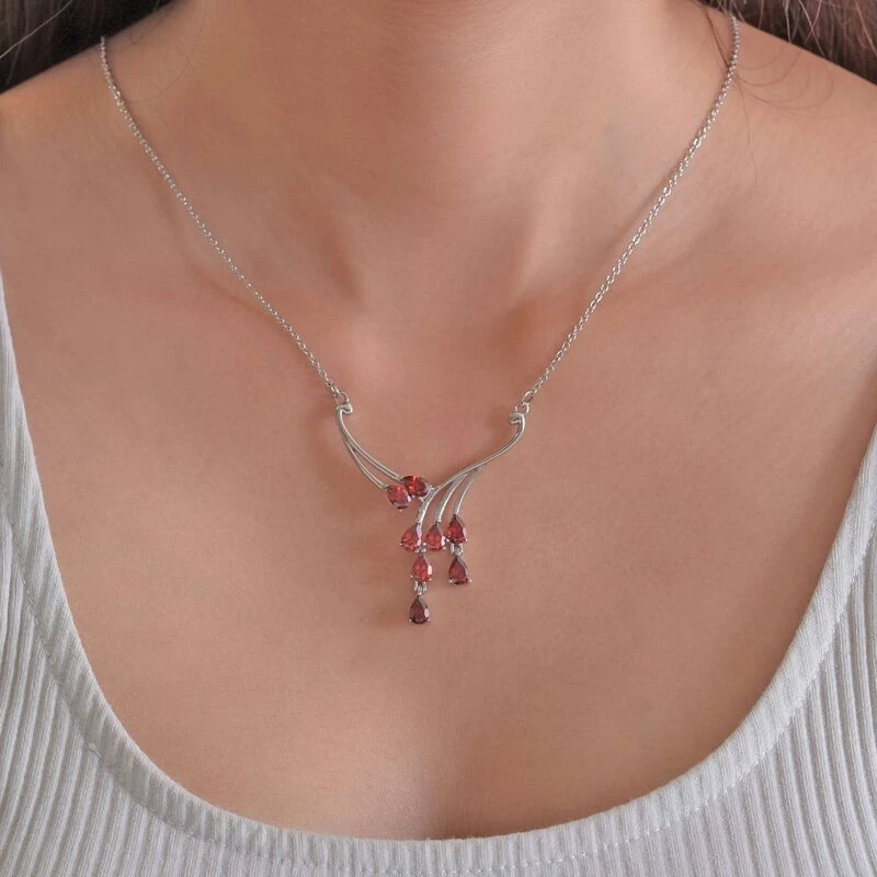 Roter Granat Halskette Ca. 45 Cm Edelstahl Ca. 3.61 Ct