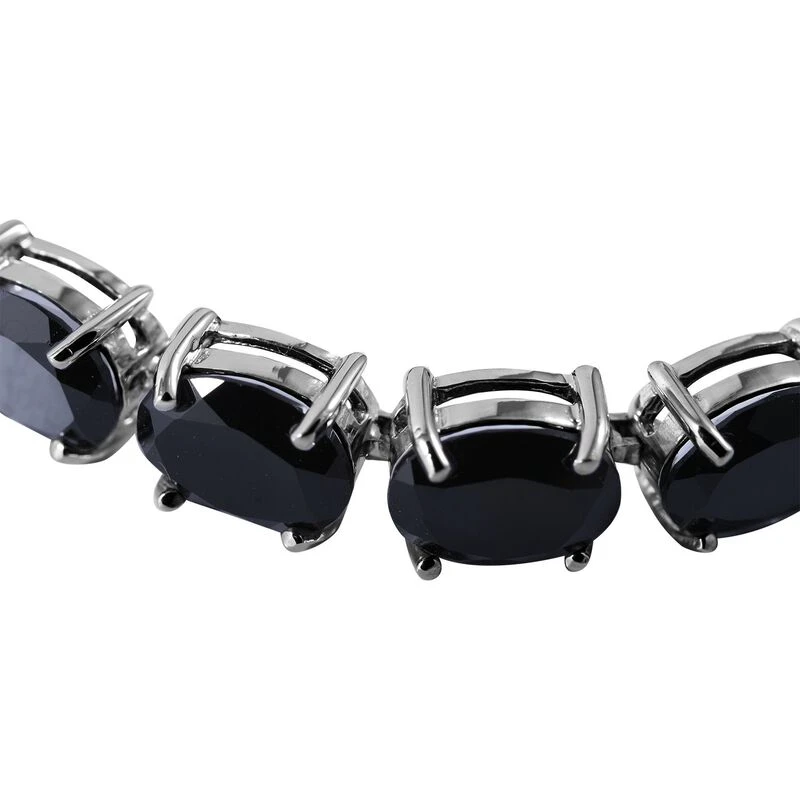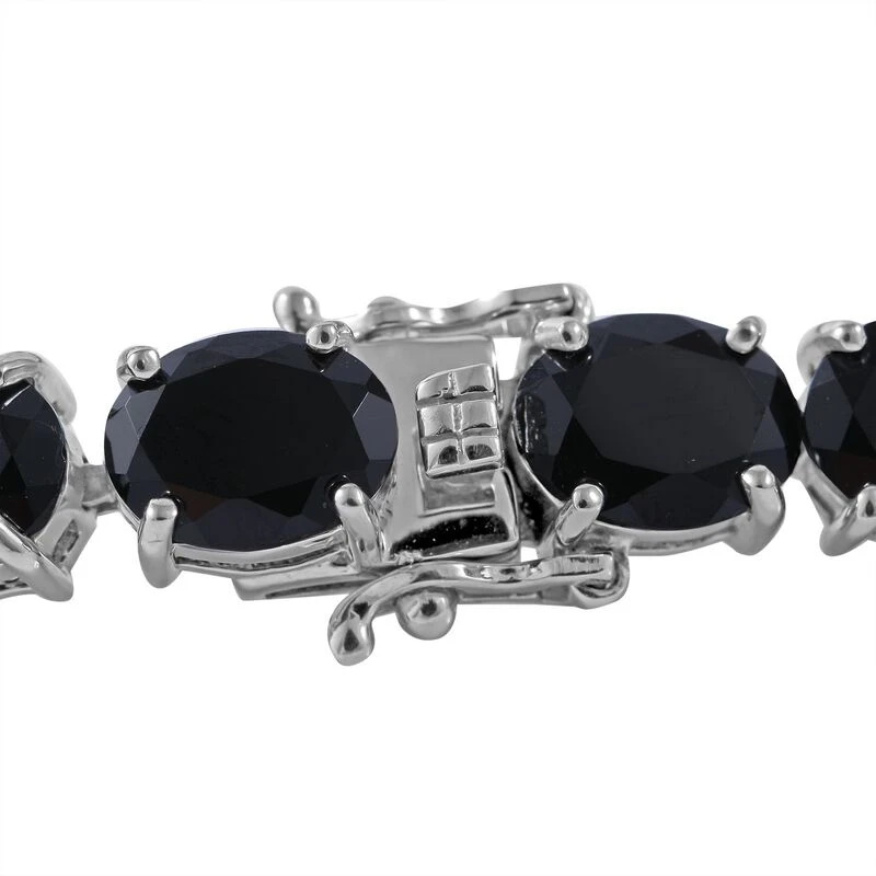 Schwarzes Spinell Armband, Ca. 19 Cm, 925 Silber Platiniert Ca. 43.00 Ct