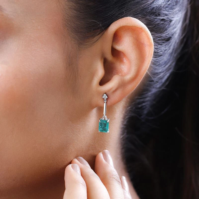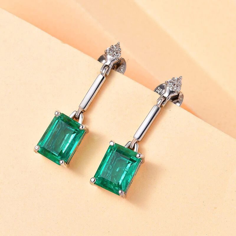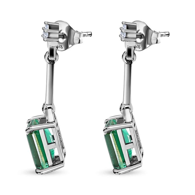 Smaragd-Triplette-Quarz, Weißer Zirkon Ohrringe, 925 Silber Platiniert Ca. 3.70 Ct