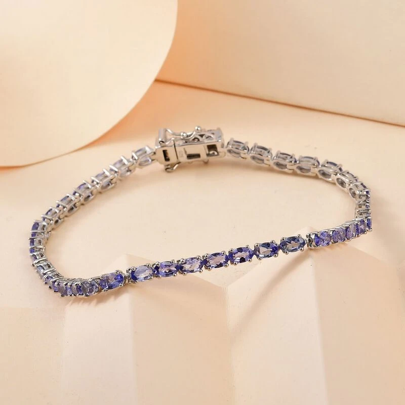 Tansanit Armband, Ca. 20 Cm, 925 Silber Platiniert Ca. 1,41 Ct