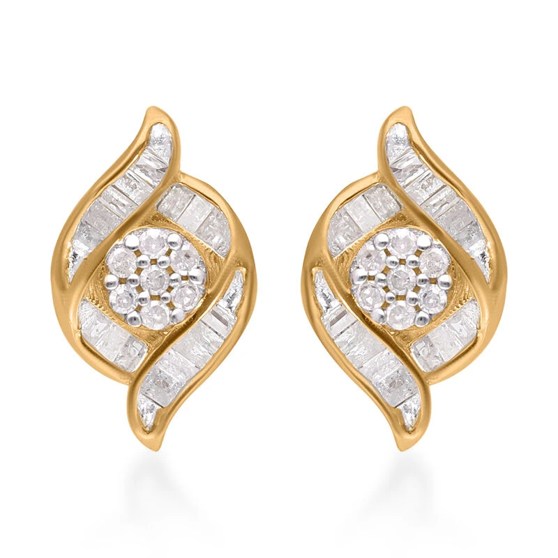 Weiße Diamant Ohrringe 925 Silber Gelbgold Vermeil Ca. 0.33 Ct
