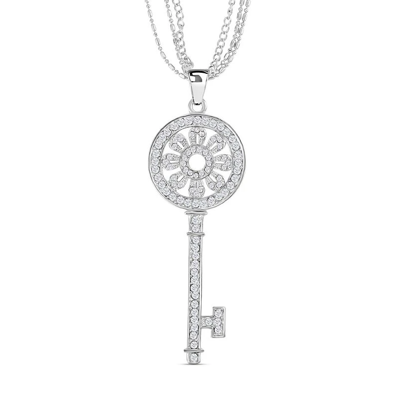 Weiße Kristall Schlüssel Anhänger Mit Kette, Silber