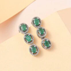 Natürliche Chrom Turmalin Und Weiße Zirkon-Ohrringe, 925 Silber Gelbgold Vermeil Ca. 1.14 Ct