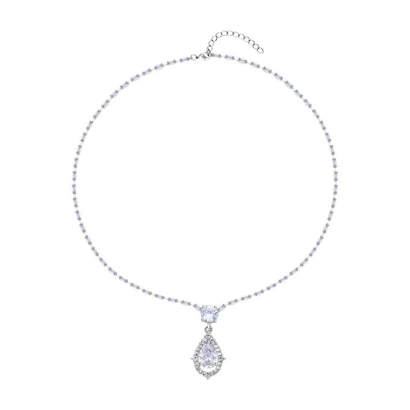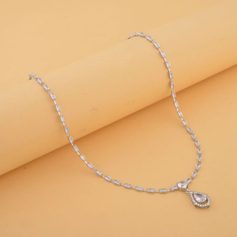 Weißer Zirkonia, Weißer Kristall Halskette Ca. 50 Cm Reines Messing Ca. 8,00 Ct