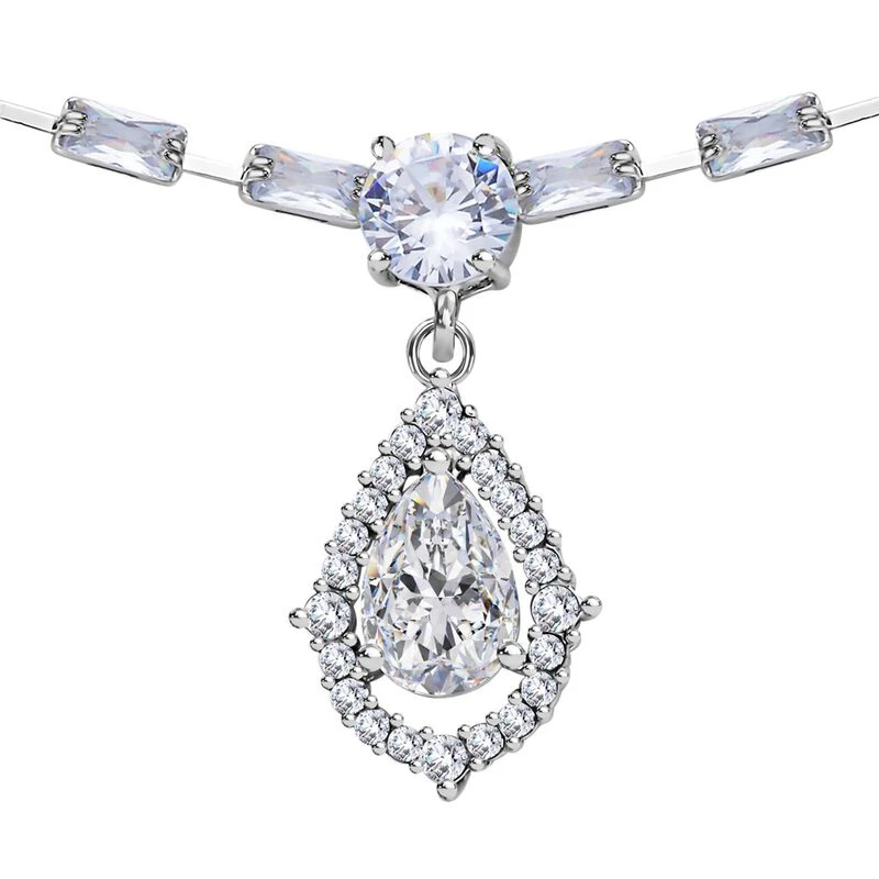 Diese majestätische Halskette funkelt mit 40 Zirkonia und 32 Kristallen, um Ihre Schönheit zu unterstreichen. Die Halskette ist so konzipiert, dass Sie auch mit kleinem Budget glänzen können und Ihre eleganten Looks mit einem Karabinerverschluss vervollständigen.