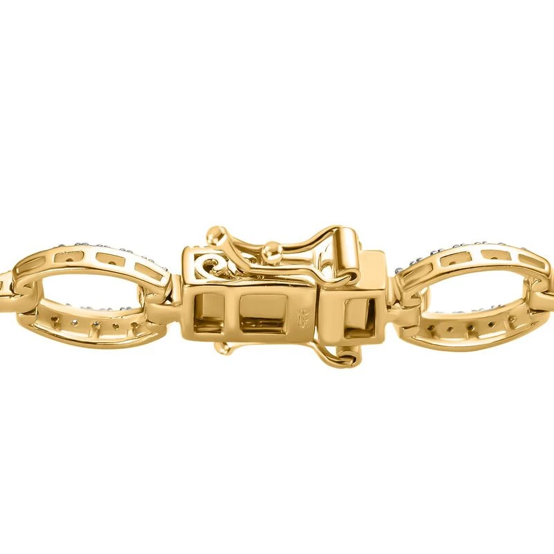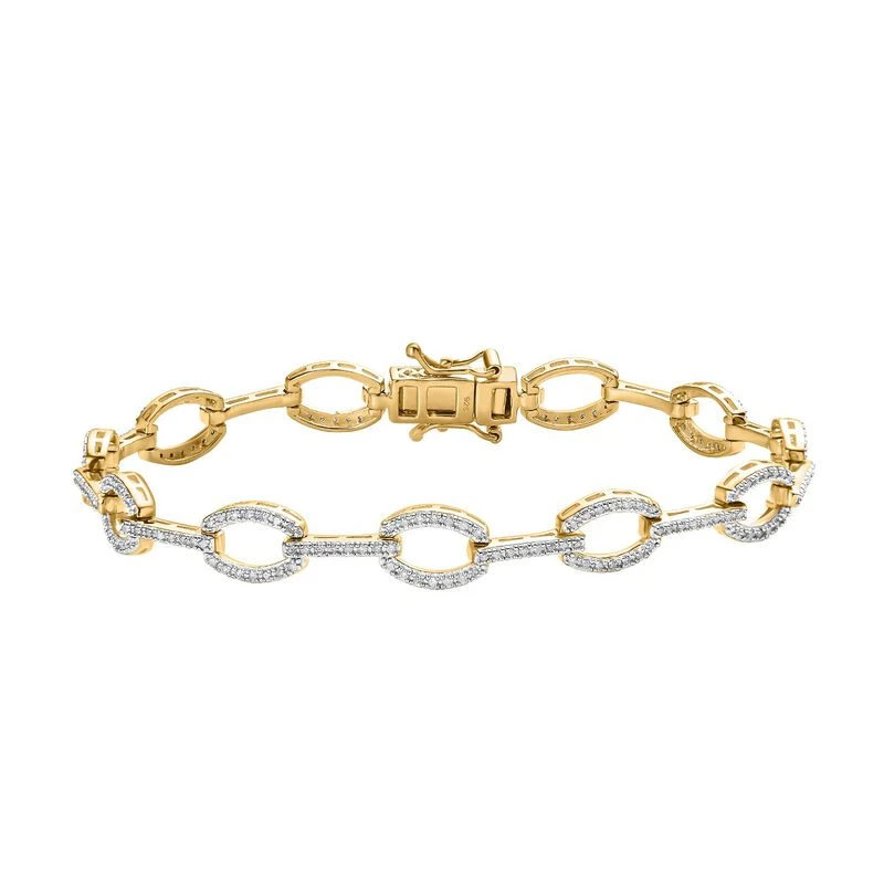 Dieses Armband mit seinem klobigen Glieder-Muster bietet den luxuriösen Glanz von 238 Diamanten in einer Pavé-Fassung. Das 10,7 Gramm Armband aus Silber mit Gelbgold Vermeil wird mit einem Kastenverschluss verschlossen und ist das perfekte Luxusgeschenk!
