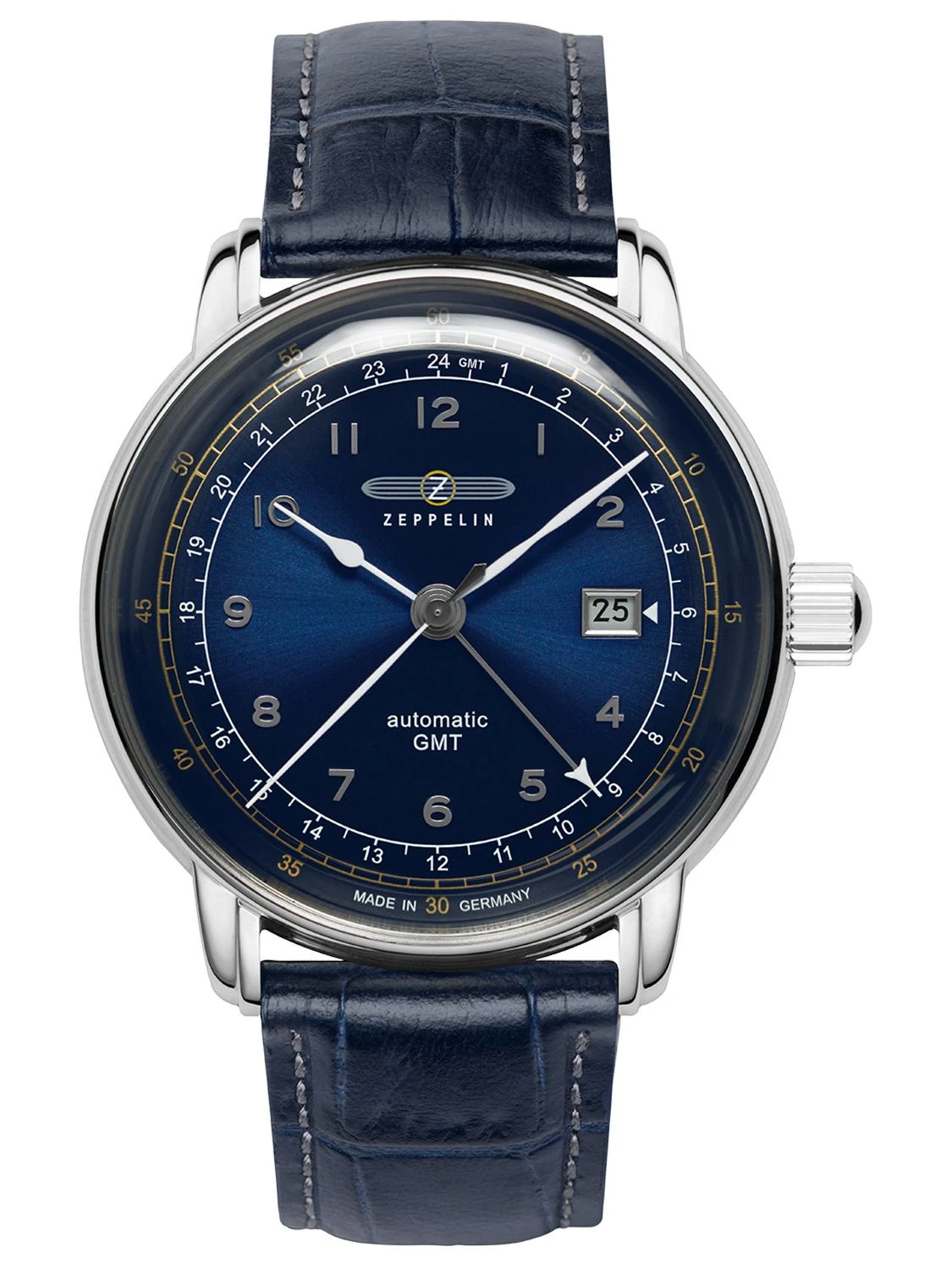 Zeppelin 7668-3 Herrenuhr Automatik GMT LZ126 Los Angeles Dunkelblau