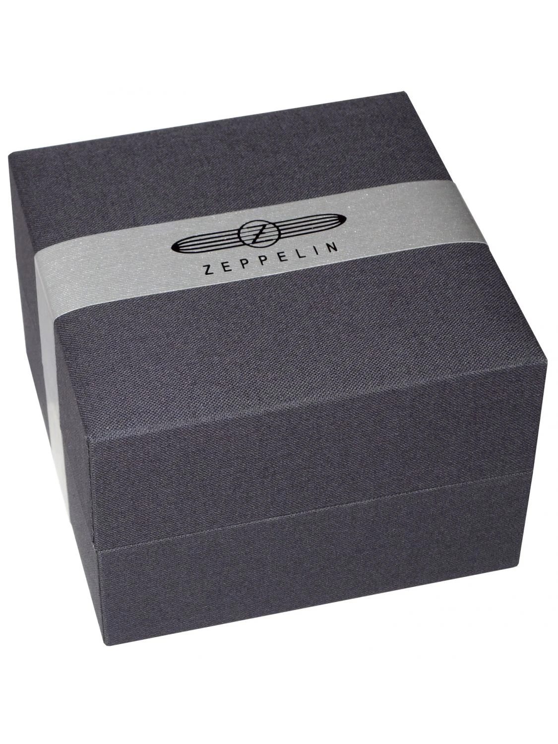 - poliertes Edelstahlgehäuse mit den typischen Zeppelin-Ringen am Gehäuserand